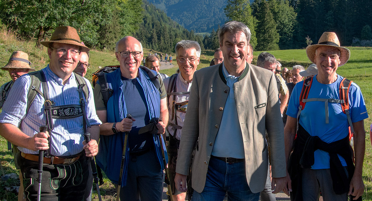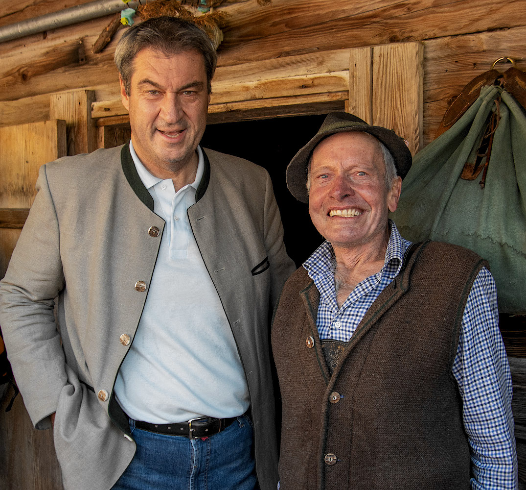 markus Söder und Anton Maier sen , Deusch, Hauptalmbegehung des AVO in Rottach Egern , hier an der ersten Station Sieblalm der Auftakt, Foto tp, Jubiläumshauptalmbegehung, zur einmalligen Nutzung Almbauern im Rahmen der Hauptalmbegehung